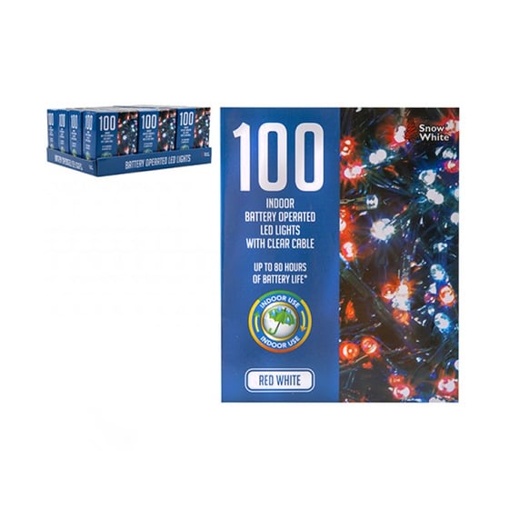 100 Christmas Battery Operated LED Lights Red & cold White
