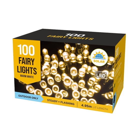 100 Solar Outdoor LED Christmas Fairy Lights in Warm White