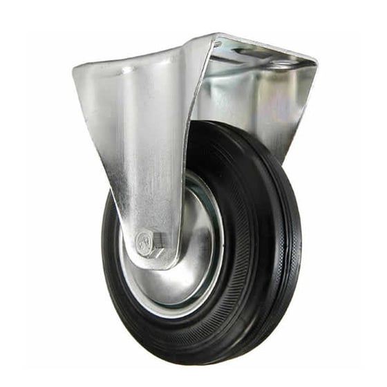 Black Rubber Fixed Castor Wheel 125mm