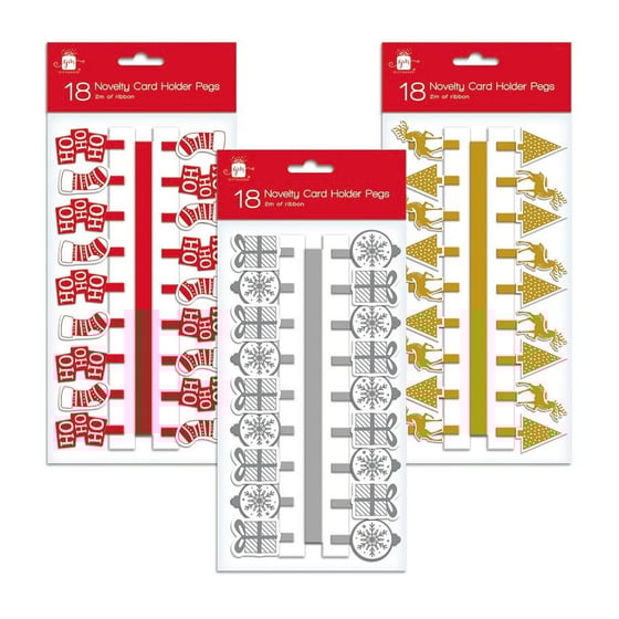 Please Note: Each Pack Of 18 Novelty Christmas Card Holder Pegs is assorted and you will receive one colour picked at random from our assorted stock. Orders for more than one item may receive different colours but could receive all of the same colour. Unfortunately, we are not able to accept requests for a particular colour before or after purchase.