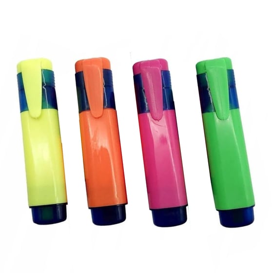 Mega value 4 pack of highlighters in pink, orange, green and yellow.