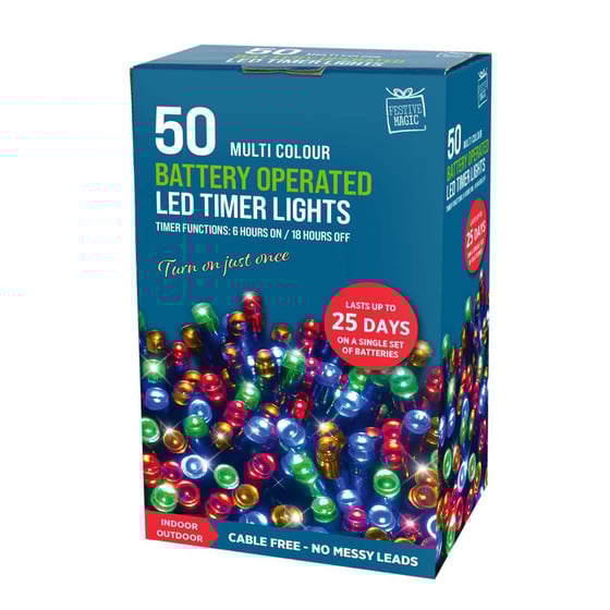 Festive Magic 50 Multicoloured String Lights Battery Operated