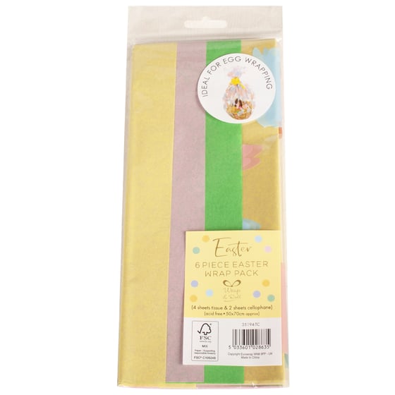 The pack includes 4 sheets of tissue paper and 2 sheets of cellophane, each measuring 50 x 70cm, ensuring plenty of material for wrapping eggs, gifts, or treats. The acid-free material adds a polished, professional finish to your presents, ensuring they look as delightful as the surprises inside. Whether you’re preparing Easter gifts for friends and family or wrapping up Easter eggs for a festive hunt, this wrap pack is the perfect choice.