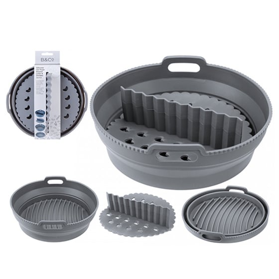 Create perfectly crispy and delicious meals with the B&Co air fryer pop up round silicone liner.
