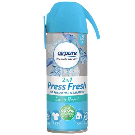 Keep your home smelling fresh with this fantastic Linen Room air freshener spray from Airpure. With fresh scents in every spray, coming home from work or a day out will become a joy. Household smells can build up when all of the windows are shut and no natural air can pass through, but having this air freshener spray to hand is sure to keep your home fresher for longer. Musty rooms can often lead up to embarrassment when inviting your friends and family over. Stuffy smells can be a thing of the past thanks to the combative fresh scent of this air freshener. The measured fragrance with each spray ensures that you'll always be using the right amount for your household. Airpure is well known for its long lasting and reliable products, so give your home a boost this season.