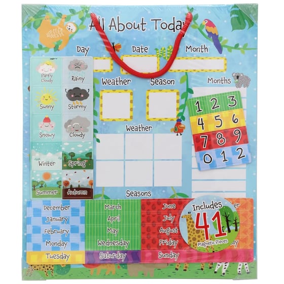 Discover new ways to learn and play with the All About Today magnetic learning board! This unique board uses magnetic pieces to teach kids about days of week, months, weather, and more.