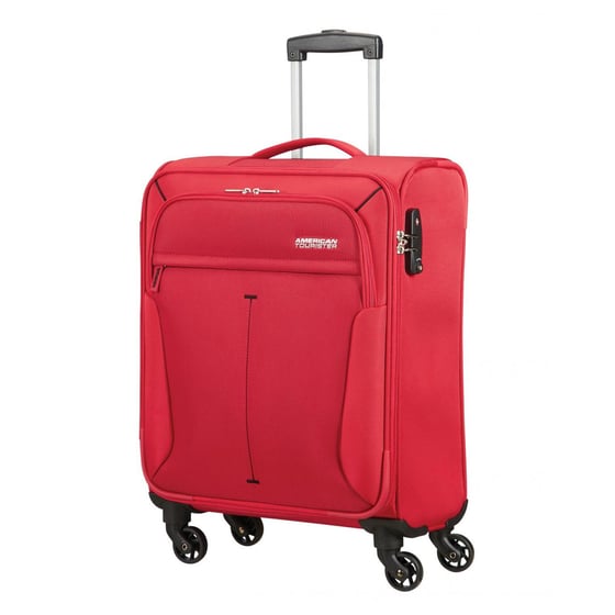 The roller wheels make it a breeze to navigate through airports and hotel lobbies, and the retractable handle allows for easy carrying. The case also features a lockable zipper closure for added security. Whether you're going on a short weekend getaway or a long international trip, the American Tourister Red Roller Case has got you covered!