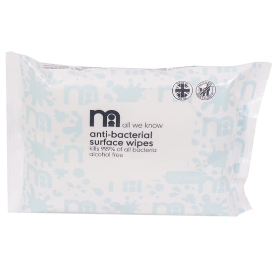 These anti bacterial surface wipes are alcohol free and are safe to disinfect surfaces including high chairs, toys, door handles and where food will come into direct contact.