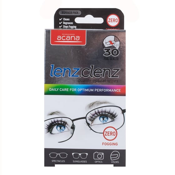 The Acana tested and proven Lenz Clenz quality optical wipes are non smear, anti fogging anti bacterial and safe for all lens types. Ideal for spectacles, sunglasses, camera and video lenses. They can also be used on CD's, DVD's and visors. The perfect daily care for optimum performance.