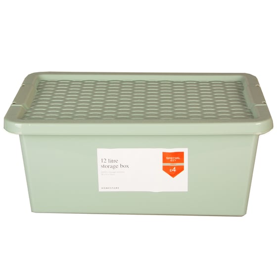 Aqua Green Rattan Plastic Storage Box With Lid 12L