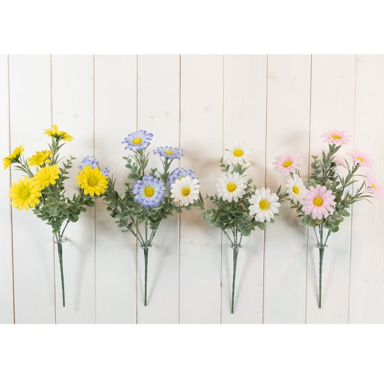 Elevate your home or office with the fresh, natural look of this low-maintenance artificial plant. The realistic daisy and eucalyptus leaves create a serene, calming ambiance that lasts all year round. Simply place it on a table, shelf or mantel and enjoy the beauty without the hassle. With their delicate petals and graceful stems, these fake flowers elegance, making them a choice for weddings, parties, or any special occasion.