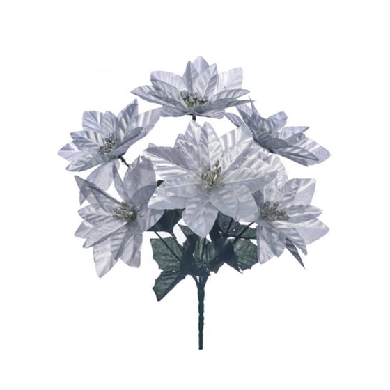 Artificial Metallic Silver Christmas Poinsettia Bush 34cm