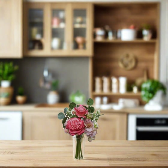 Fashioned with a realistic finish, this beautiful rose mixed bundle bouquet features elegant flowers in a beautiful tone of pink.