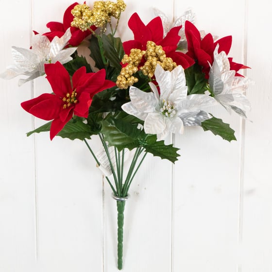 Add a touch of festive cheer to your home over the Christmas holidays with the artificial Poinsettia Bush Mix.