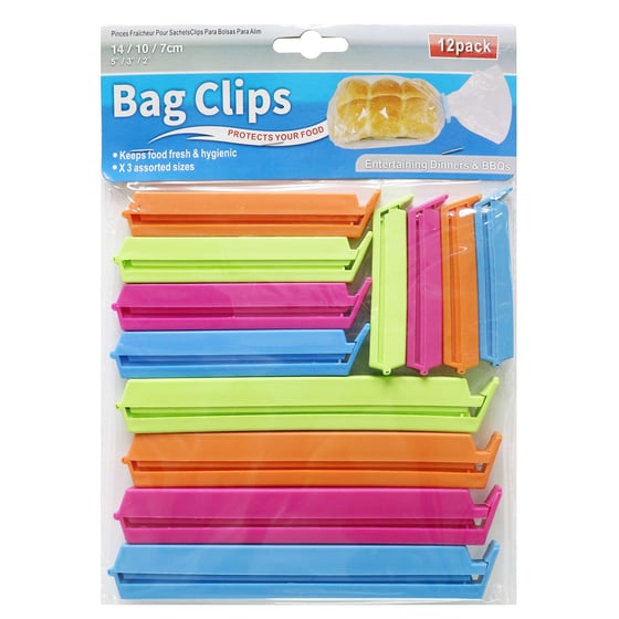 Keep your snacks fresh and organized with this 12 pack of assorted bag clips These durable clips are perfect for sealing bags of bread, crisps, cereal, and much more.
