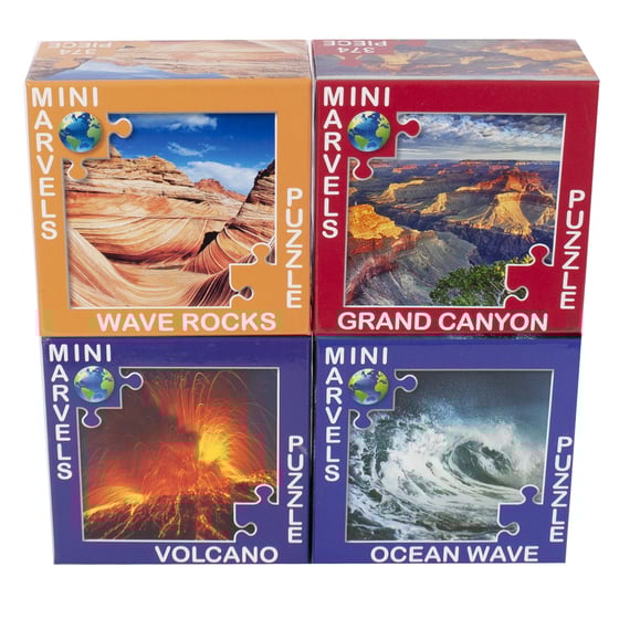 Inspired by the breathtaking beauty of our planet, the mini marvels jigsaws showcase some of the most beautiful places in the world including Wave Rocks, The Grand Canyon, Ocean Wave and a volcano.