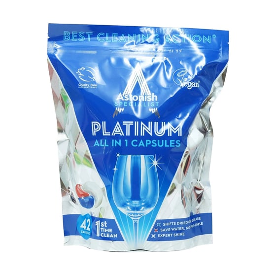Stop Second-Guessing Your Dishwasher And Trust Astonish Platinum All In 1 Dishwasher Capsules 42 Pack To Deliver A Sparkling Clean First Time.