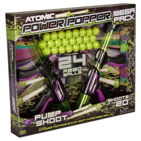 Get ready for endless fun with Atomic power popper mega gun balls! This pack includes 24 high-powered foam balls to shoot and reload with ease.