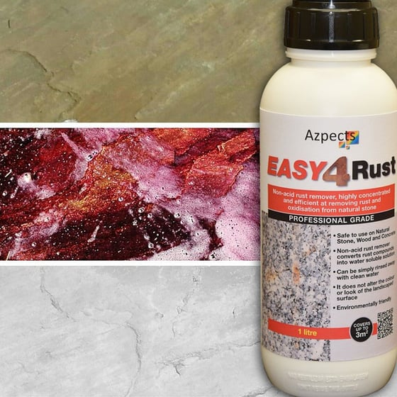 The Easy 4 Rust Remover from Azpects is a non acid rust remover that is highly concentrated and is highly efficient at removing rust and oxidization from natural stone.