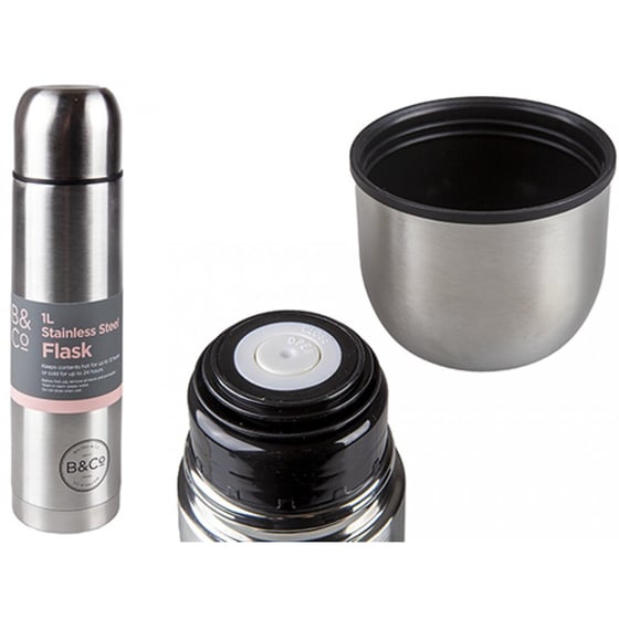 This 1L stainless steel flask is great for taking your favourite drink with you wherever you go and is great for taking with you to work, school, picnics etc as you can keep your fluids either cold or hot for a long period of time thanks to the stainless steel interior and exterior.