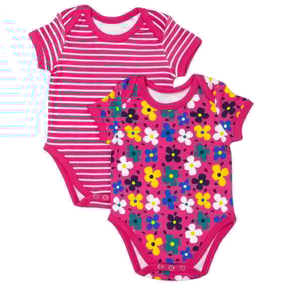 Our baby boy and baby girl bodysuit multipacks feature contrasting trims and come in a range of different colours and patterns to suit all preferences - choose from pink, blue, orange or navy. They are also available in sizes ranging from 0 - 24 months so that your little one can be kitted out with our beautiful boy's and girl's baby bodysuits for the first 2 years of their lives.Â