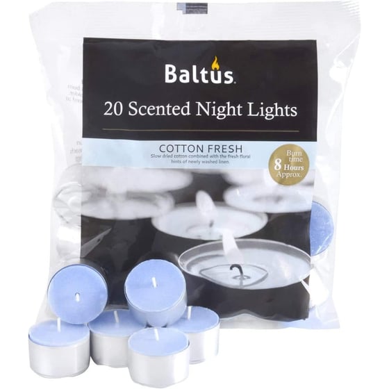 Light and warm up your home with the beautiful ambience of these Cotton Fresh scented tealights from Baltus. The sweet scent of flowers and dried cotton burns evenly to lift the room and compliment its surroundings. Perfect for any room, the subtle aesthetic of the candle's design will fit into any environment and immediately make a house a home thanks to its modern aesthetics. You will really feel like you are relaxing in a beautiful garden, sliding into pure bliss with a refreshing drink. A burn time of up to 8 hours per candle will leave you confident in the knowledge that you'll be cosy for hours to come, with the scent lasting beautifully throughout the whole time. Capable of retaining its fragrance burn after burn, treat yourself to a wonderful evening surrounded by the scents of paradise.