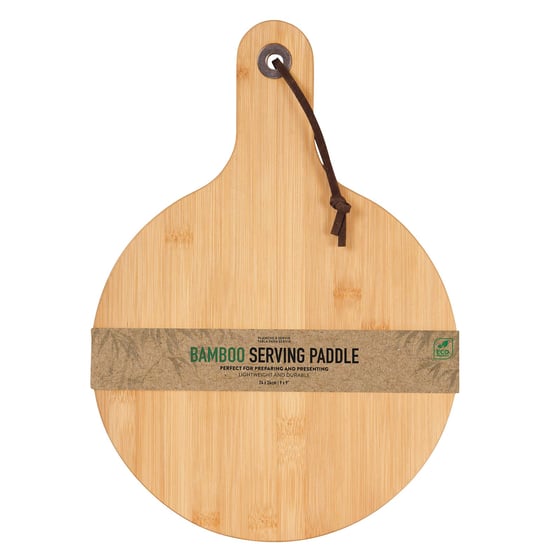 Step up your cooking game with this bamboo serving paddle. When spending time in the kitchen, you need reliable equipment to get you through. Cutting boards and serving equipment in particular have to be durable in order to work effectively, and bamboo is an incredibly durable material perfect for hard work. Bamboo has a dense yet porous consistency, making it the perfect surface for chopping fruits, vegetables, meat, and poultry. The dense quality of the wood helps to keep out water and juices, and as a result, greatly reduces the growth of bacteria. Standard wooden cutting boards aren't always up to the task of consistent food prep, leading them to warp or crack. Bamboo meanwhile has much greater durability, and this cutting board is sure to become a staple of your kitchen.