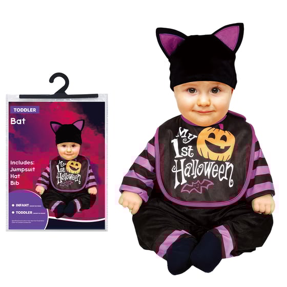 Whether you’re marking baby’s very first Halloween or dressing up your toddler for some festive fun, the Bat Costume for Toddlers is the perfect pick. With its soft striped jumpsuit, matching bat-ear hat, and a cute bib reading “My 1st Halloween,” this three-piece costume brings maximum charm with minimal fuss. It’s designed for comfort, easy changes, and plenty of sweet Halloween moments—whether at home, nursery, or out and about.