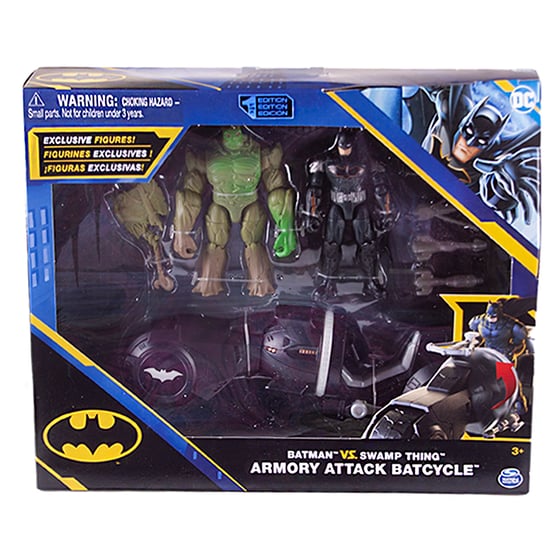 Create Your Own Superhero Adventures With The Dc Batman Vs Swamp Thing Battle Pack With Armory Attack Batcycle.