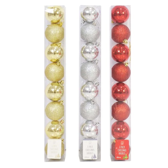Baubles 8pk Glitter & Shiny 6cm Assorted