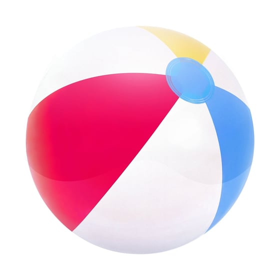 A inflatable beach ball with traditional beach ball glossy panels.