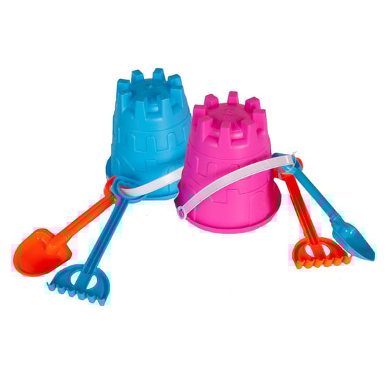 - Assorted colours: Bucket: blue or pink, Spade/Rake orange or blue