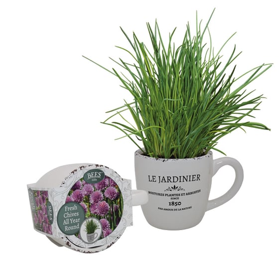 The Bees Le Jardinier Chives Herb Grow Set would be a beautiful gift or a simple gardening tool. The set has easy to grow, versatile and decorative, chives which will grow attractive pink flowers and rush like leaves. Chives are excellent for use in potato dishes and salads.