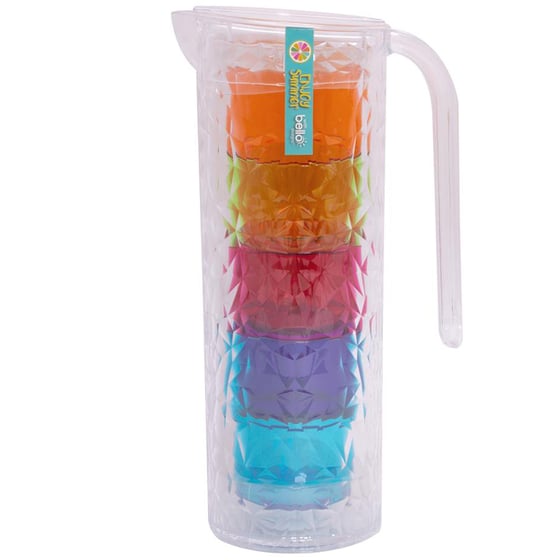 The set allows you to limit how often you have to go inside to refill your drink, so you can stay in the sun for even longer. The pitcher and tumbler has been made from PS material with the pitcher having a clear design and the tumblers come in four assorted bright colours.