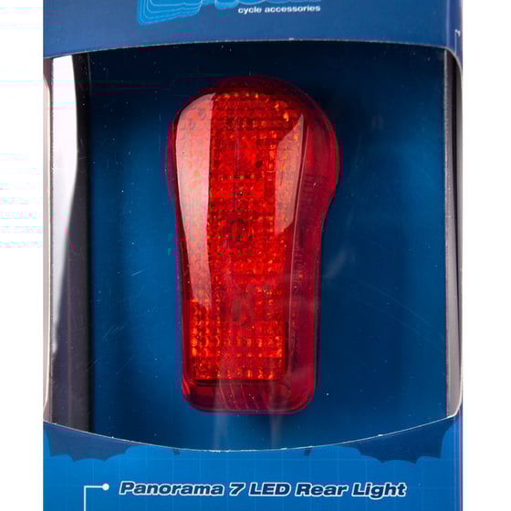This panorama LED rear light clips on to al types of bike, and is visible up to 400m! Its best to stay safe while on the roads, even more so in the dark! Complete with batteries, (2 x AAA) just strap it on and your ready to go! The high intensity 7 red LEDs will ensure you'll be visible for the track ahead!