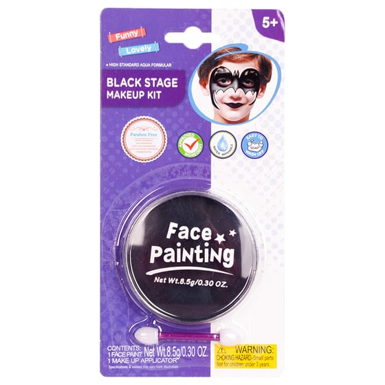 Get the whole family ready for the party season with this black stage makeup. Black can be such an important base for all kinds of fancy dress looks, so this is the perfect base for all of your costumes. Become a cute kitten, or turn into a scary skeleton, the choice is up to you!
