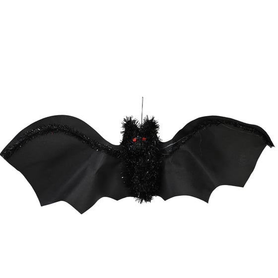Elevate your Halloween decorations with this black tinsel hanging bat! With a height of 63cm, this bat adds a spooky touch to any room.