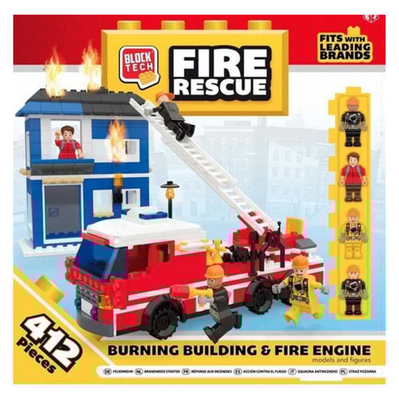 Block Tech Fire Rescue Burning Building & Fire Engine 412 Pieces