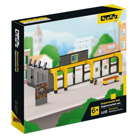 Create Your Own Mini High Street With The Blockz Supermarket Building Set 128 Pieces For Imaginative Shop Role Play At Home.
