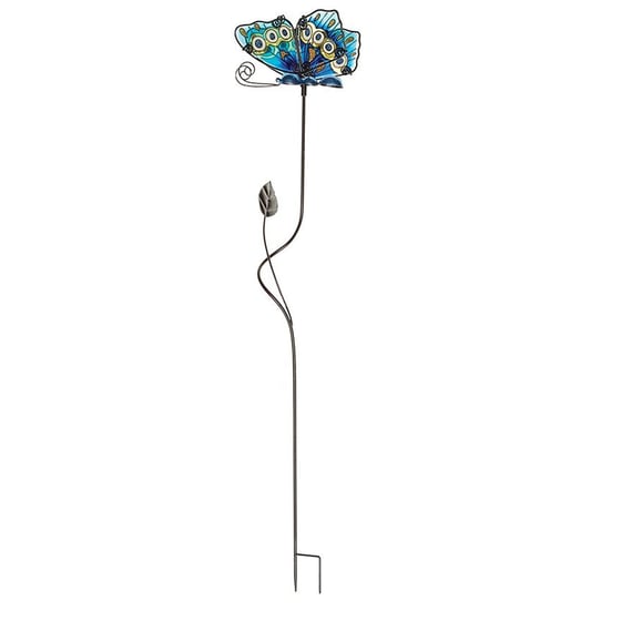 Enhance your garden with the elegant blue glass butterfly garden stake.