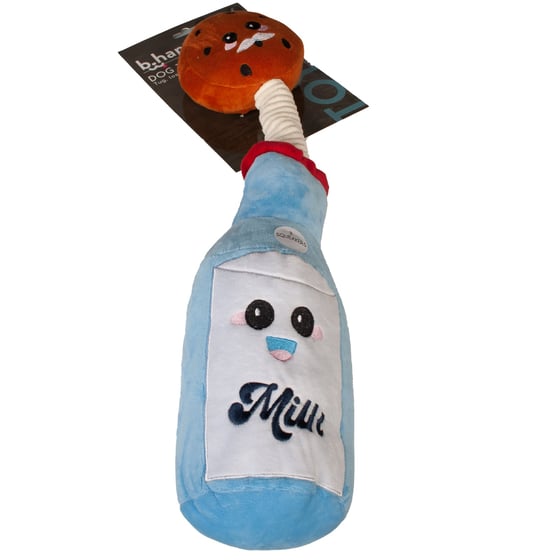 Give your furry friend the ultimate playtime experience with the blue milk & cookies dog toy.