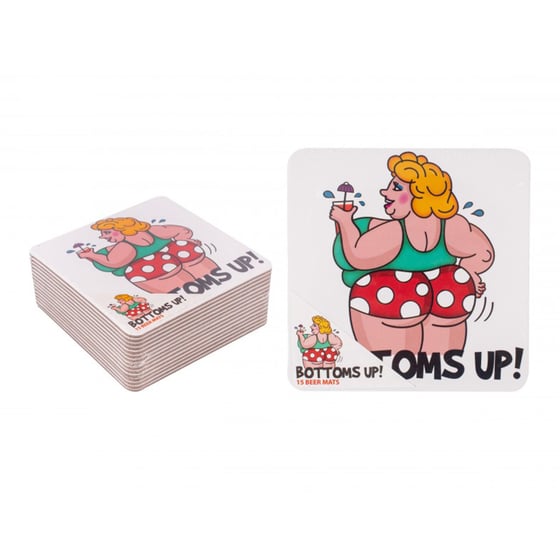 Get ready for the party of your life with this hilarious set of 15 Bottoms Up! beer mats. Decorations can really make a party special, and a good mat can often be overlooked. Balloons and streamers are of course big aspects of a birthday party, but the tables don't have to be neglected! These fun illustrated beer mats are decorated with a seaside sweetheart just ready to join in with the drinks.