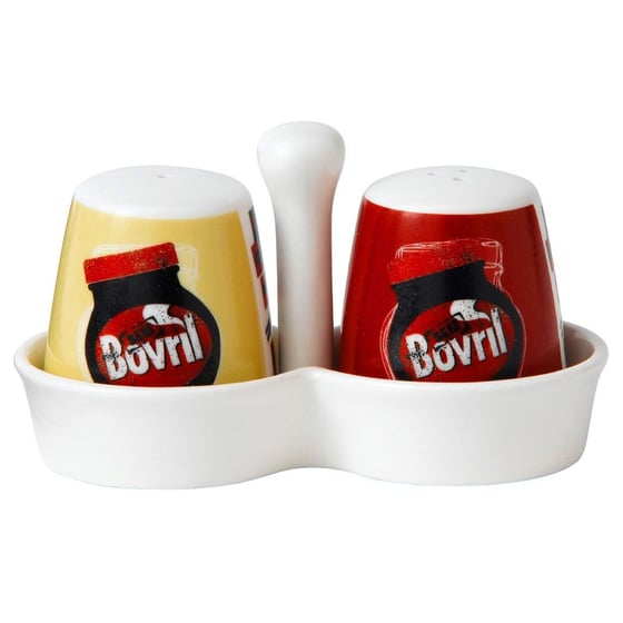 This Bovril Salt & Pepper Shaker Set is great for any kitchen, and it makes a great gift! These two salt and pepper shakers are presented in a handy ceramic caddy making them a great timeless centre piece to any table.