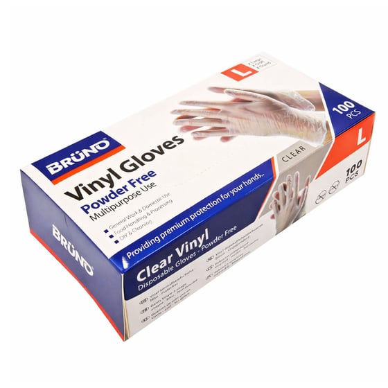 Protect Larger Hands With Bruno Large Clear Vinyl Gloves 100 Pack For Hygienic Multipurpose Use At Home Or Work.