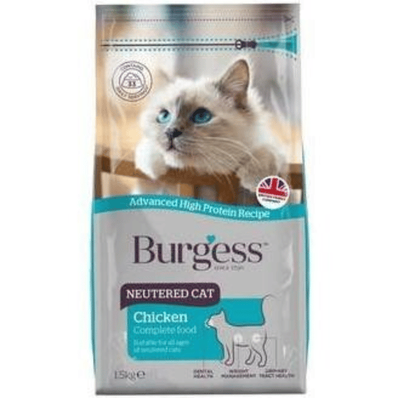 Burgess chicken neutered cat complete food balanced dry food for neutered adult cats ✓ Supports weight control ✓ Complete daily nutrition ✓ Crunchy kibble texture.