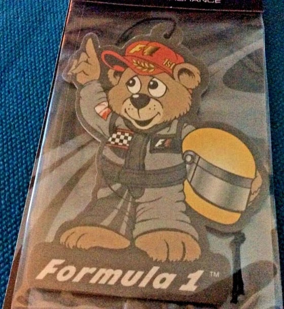 Enhance your driving experience with the Car Air Freshener F1 Bear in Vanilla scent.