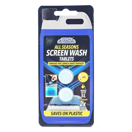 The All Seasons screenwash tablets from Car Pride are ideal for removing dirt, grime, and insect deposits.