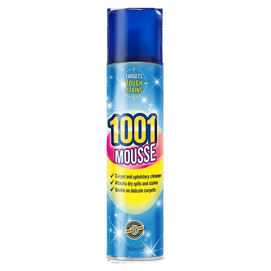 1001 Carpet Mousse is a speedy solution for treating wet spills, stains, and dried dirt.