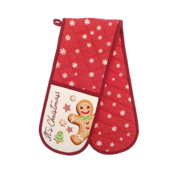 Featuring a cheerful gingerbread character and classic festive colours, these Christmas double oven gloves add warmth and personality to your kitchen décor. The quilted design helps provide insulation against heat, while the connected format ensures both hands are protected when handling larger or heavier dishes. Ideal for home bakers, festive hosts or anyone refreshing their Christmas kitchen accessories, these heat resistant oven gloves combine practical safety with seasonal style. They also make a thoughtful stocking filler or small gift for keen cooks during the holidays.