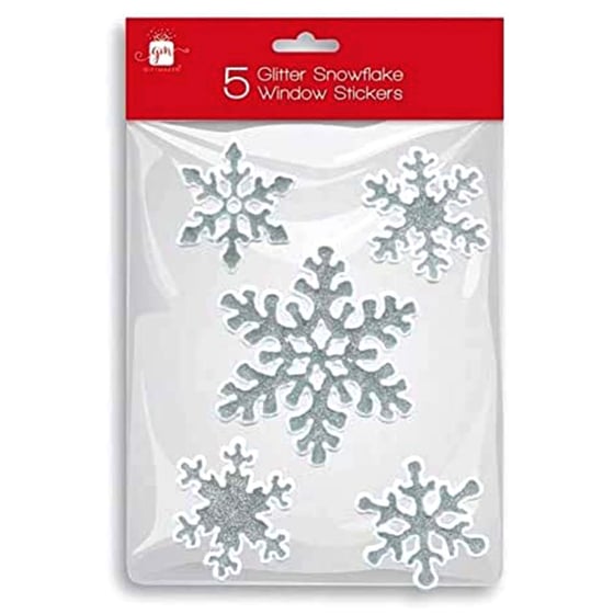 Spread the Christmas cheer with this wonderful set of 5 glitter window stickers. Each sticker is a unique and beautiful snowflake covered in sparkling glitter, and they are sure to bring joy to every passer-by who walks past your window. Christmas decorations don't have to just be for those inside your house to see, why not take the inside out and make everyone's day! Easily stick them to your windows, and when the holiday season is over, they will peel smoothly off so that you won't need to worry about permanently having the stickers up. Brilliant for all ages, you are sure to bring a smile to people's faces as they spot the stickers. Christmas is such a great time to have fun and be happy, so these stickers are sure to add to that magic.